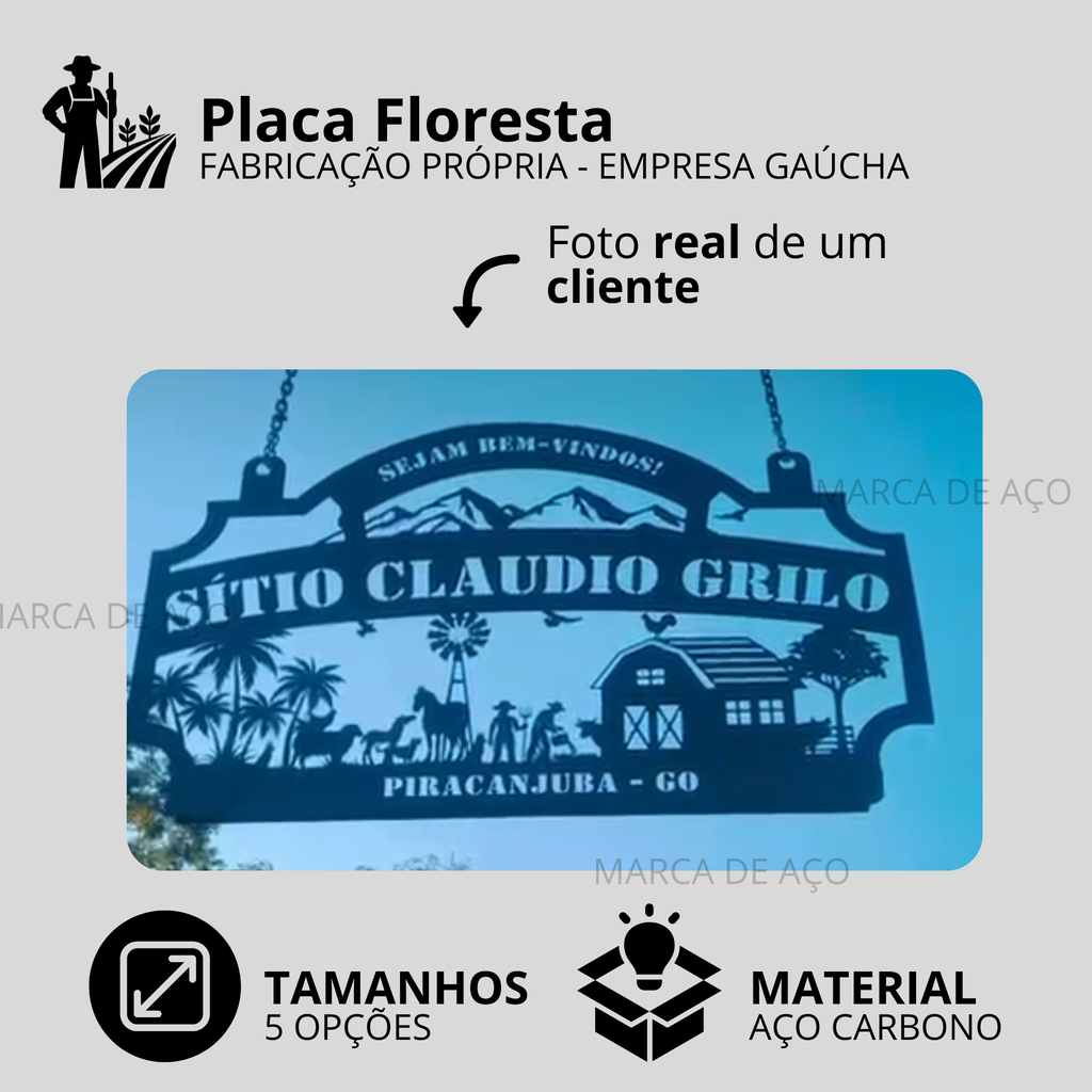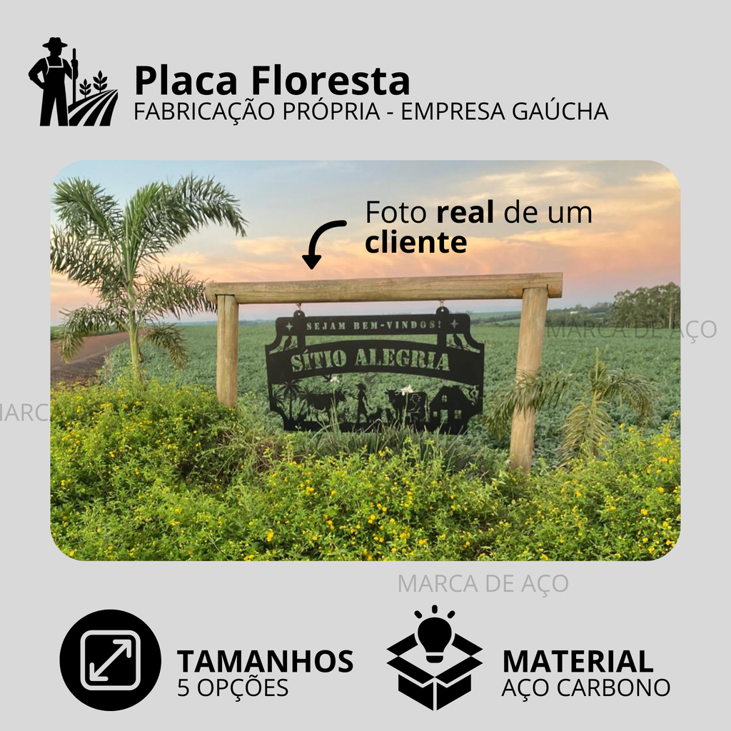 A Placa Modelo Floresta é fabricada por nós, em metal de alta qualidade, pensada para quem valoriza durabilidade, acabamento impecável e um visual marcante.